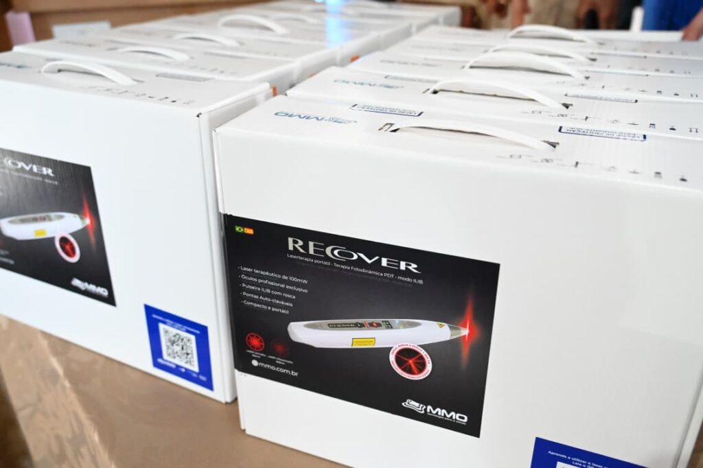 O prefeito Sandro Mabel entregou nesta quinta-feira (19/3) 18 aparelhos odontológicos para laserterapia em evento no Cmei Solon Batista Amaral, na Vila Jardim Vitória. A entrega simbólica marca um avanço tecnológico na saúde bucal, que passa a dispor de laserterapia em todos os Centros de Especialidade em Odontologia da SMS. Esta técnica utiliza feixes de luz (alta ou baixa potência) para acelerar a cicatrização, reduzir dores, inflamações e inchaços no pós-operatório. É um procedimento indolor, seguro e não invasivo, com aplicações em cirurgias, tratamento de aftas, herpes, sensibilidade dentária e ATM.