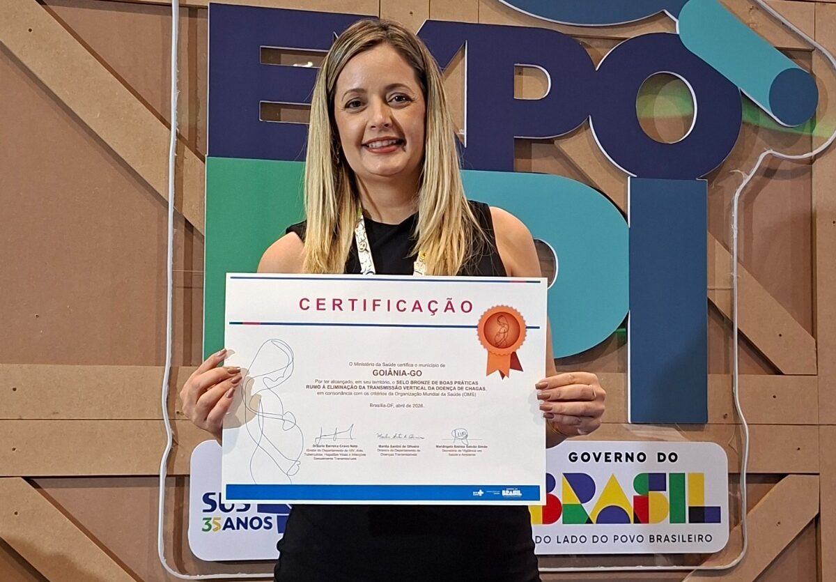A Prefeitura de Goiânia, por meio da Secretaria Municipal de Saúde (SMS), recebeu nesta quinta-feira (16/4), do Ministério da Saúde, o selo bronze por boas práticas rumo à eliminação da transmissão vertical da Doença de Chagas no município. A certificação foi entregue durante a 18ª Expoepi, congresso nacional que reúne experiências exitosas em vigilância, prevenção e controle de doenças em todo o país, realizado em Brasília. Apenas duas cidades brasileiras foram certificadas durante o evento: Goiânia e Anápolis.